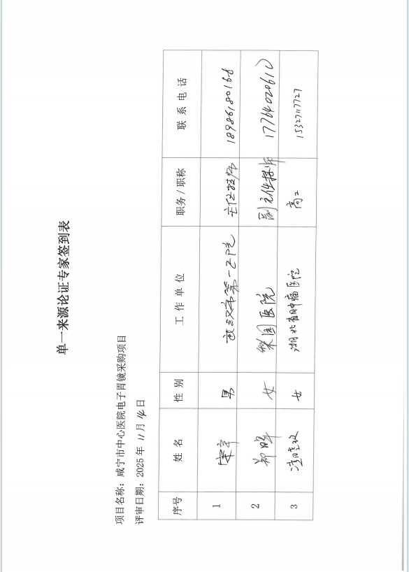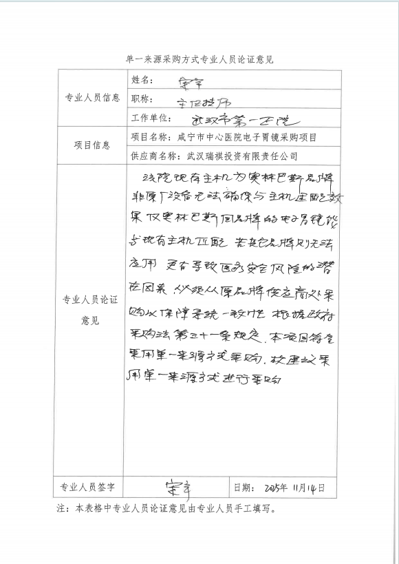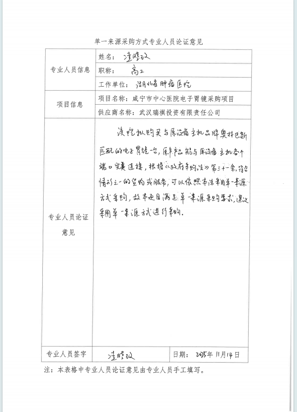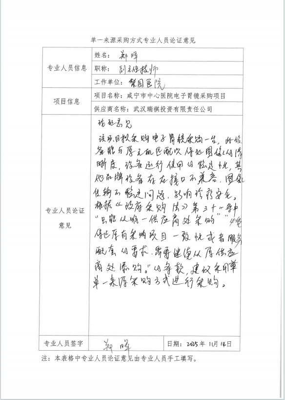 咸宁市中心医院电子胃镜采购项目单一来源论证