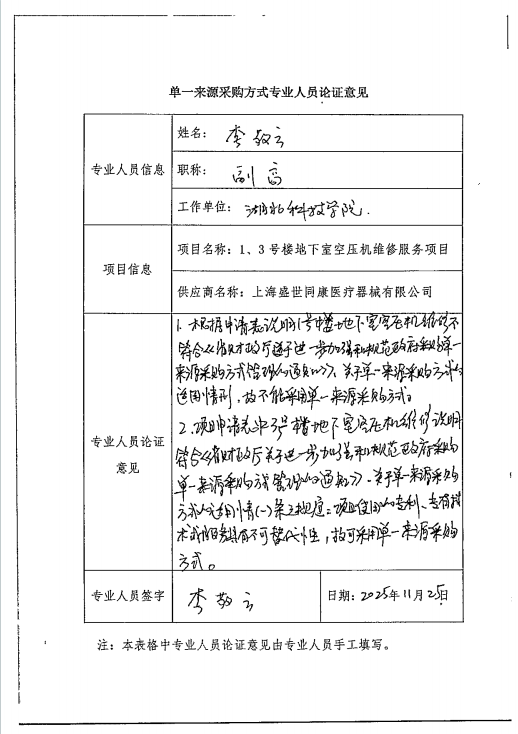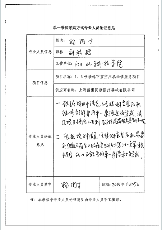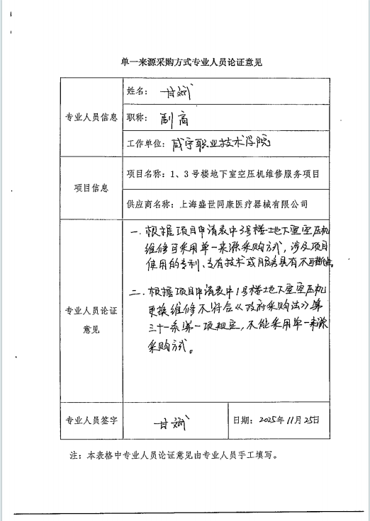 咸宁市中心医院3号楼地下室空压机维修单一来源论证公示