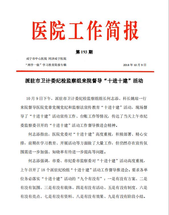 派驻市卫计委纪检组来院督导“十进十建”活动