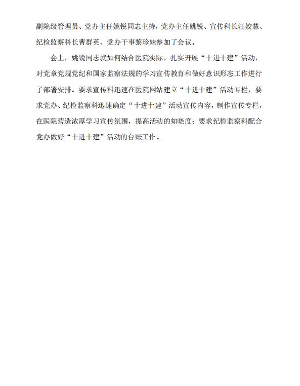 我院召开“十进十建”活动督导检查迎检暨 意识