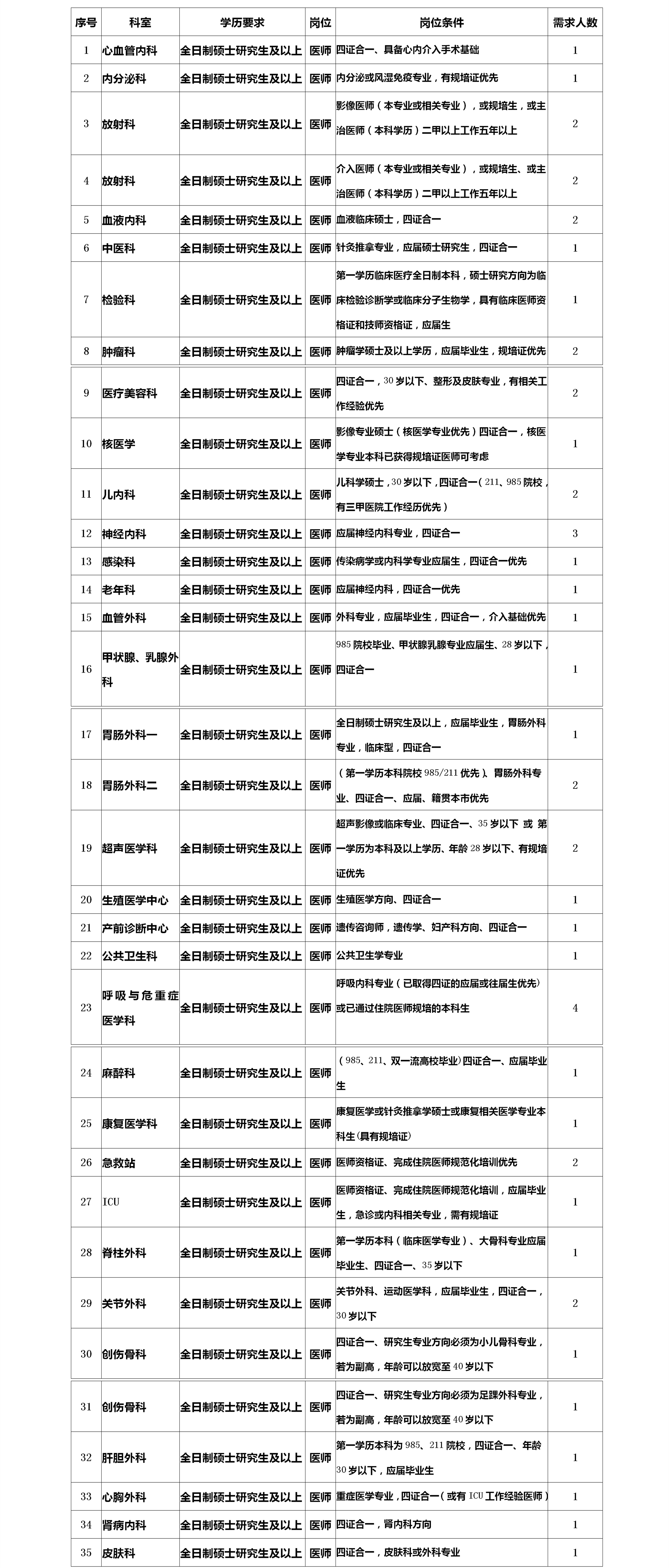 2.第一学历为全日制本科学历、四证合一(必须取得毕业证、学位证、执业医师证、规培证后方可入职)