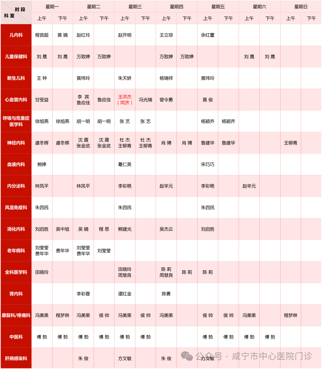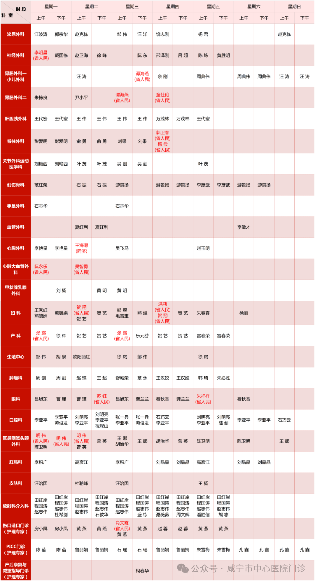 备注:门诊办公室提供,以当日挂号为准!