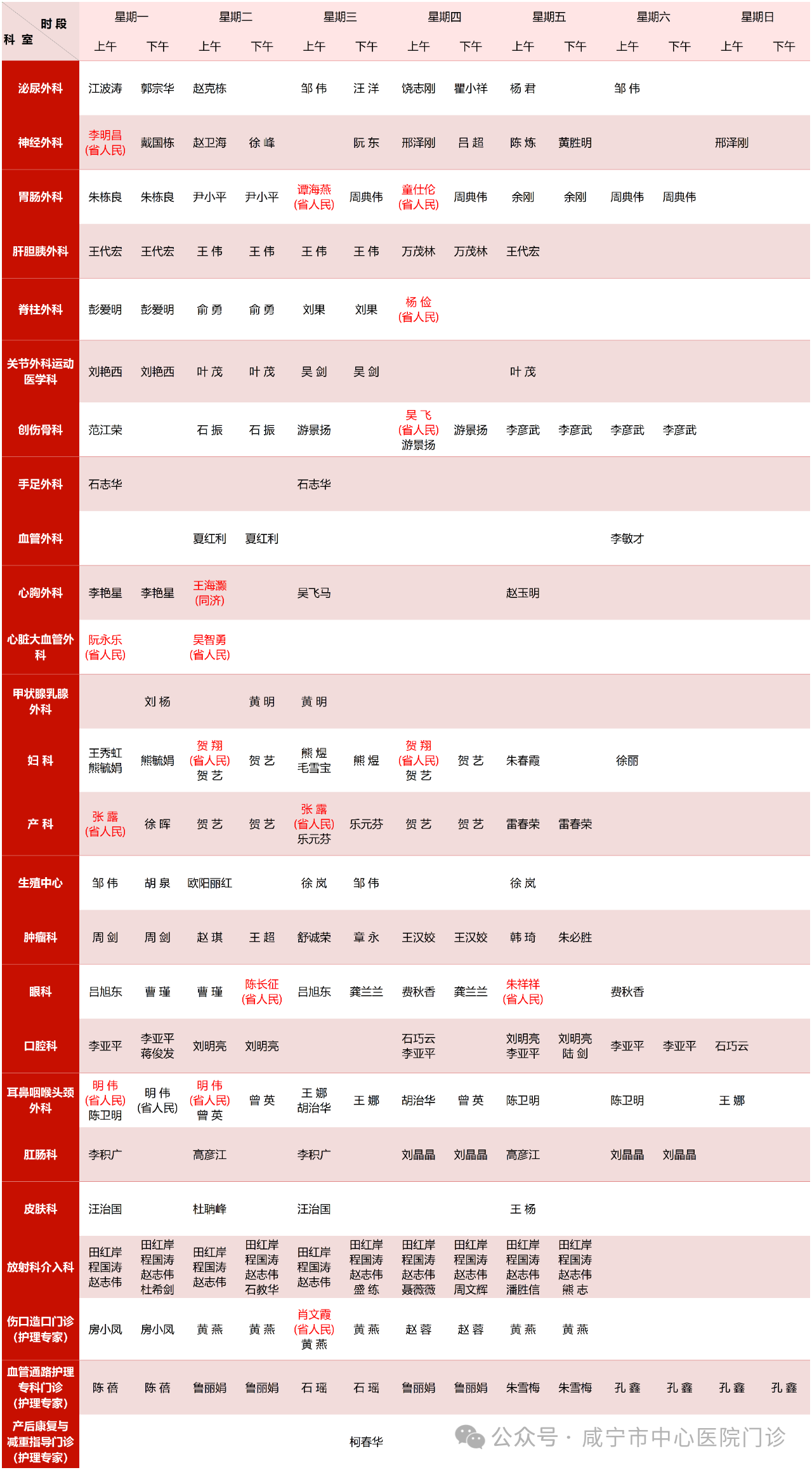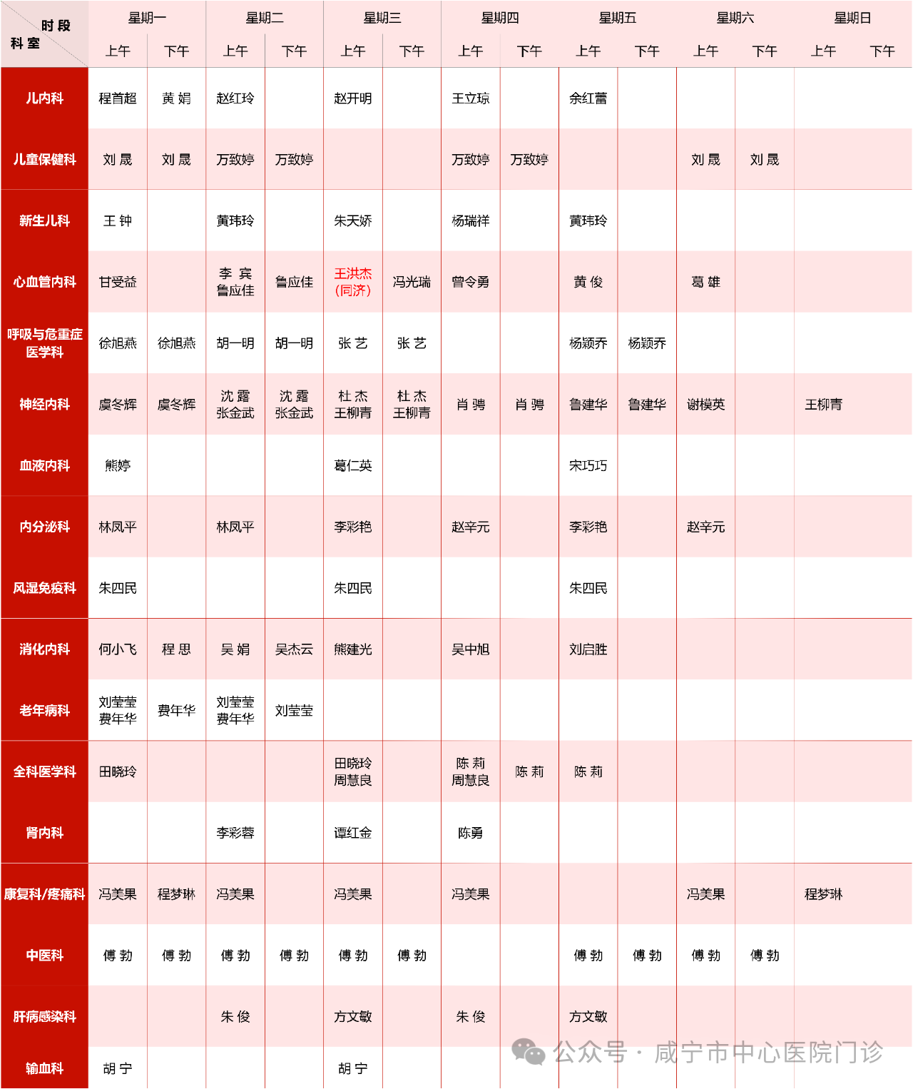 备注:门诊办公室提供,以当日挂号为准!